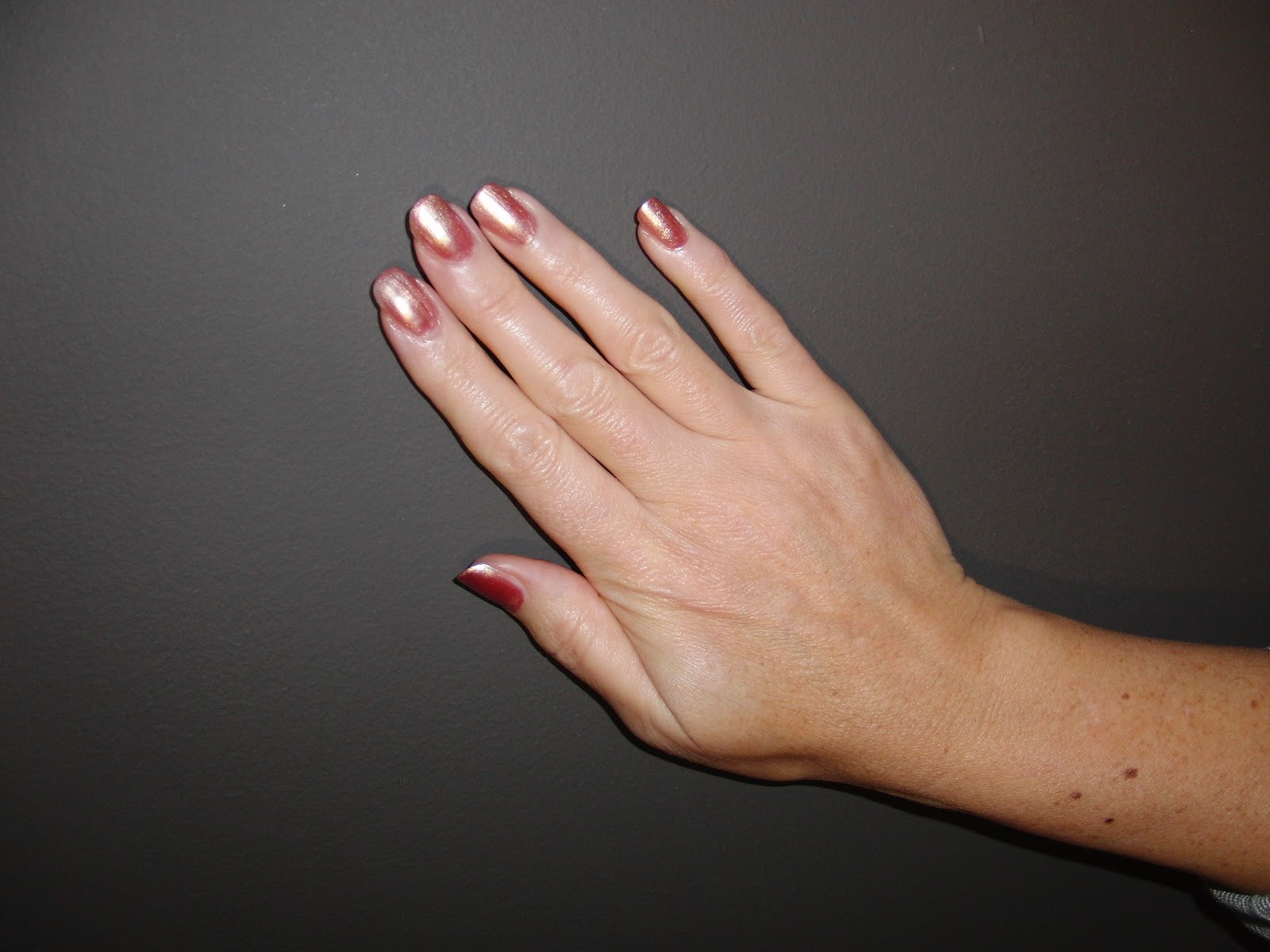 This shade really lives up to its name "Sheer French Pink". In this shot I am wearing three coats and my nails still look fairly natural. For those who like just a hint of shiny decoration on their nails, this is the one for you. I love it, as there is an understated sophistication or elegance to the way your nails look with this polish.