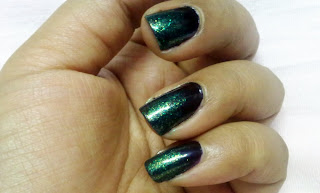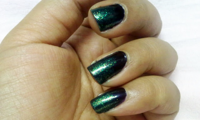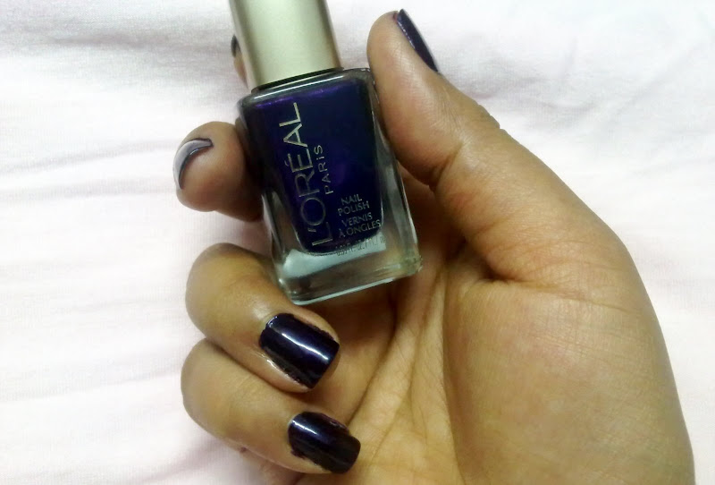 I started with my oh-so forgotten L'Oreal Paris Illuminescense 314 which is a pretty dark purple with a very subtle shimmer, kind of hidden one.